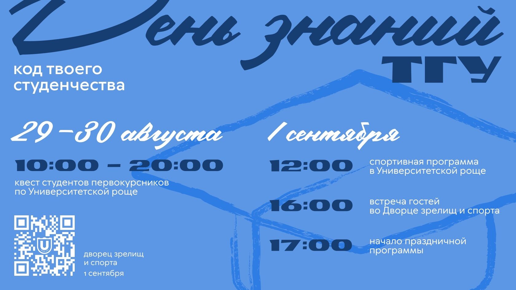 Томский Императорский ждет своих первокурсников, чтобы вместе начать новую главу. Не пропусти День Знаний — это идеальный шанс зарядиться энергией, познакомиться с одногруппниками и заложить фундамент самого незабываемого студенчества в ТГУ.